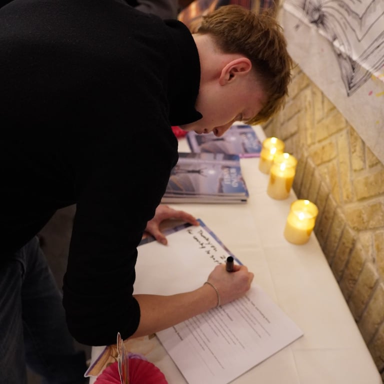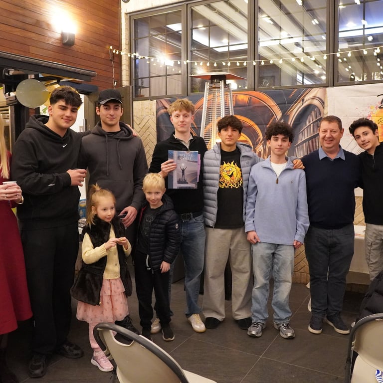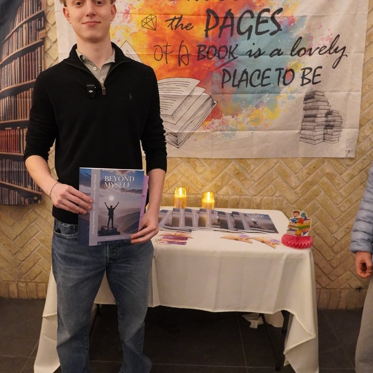 Moments from the book presentation capture the heart of Beyond Myself — honest conversations, engaged students, and a shared belief that young people have the power to lead change.